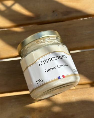 L’Epicurien Garlic Cream is a smooth garlic-based spread crafted in the French tradition. It offers a creamy texture and a well-balanced flavor, where the richness of garlic blends seamlessly with a delicate base.