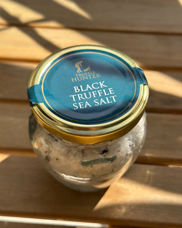 Sea salt blended with real pieces of black truffle. The salt is coarse-grained, with truffle flakes mixed through, making it easy to use both while cooking and as a finishing touch.